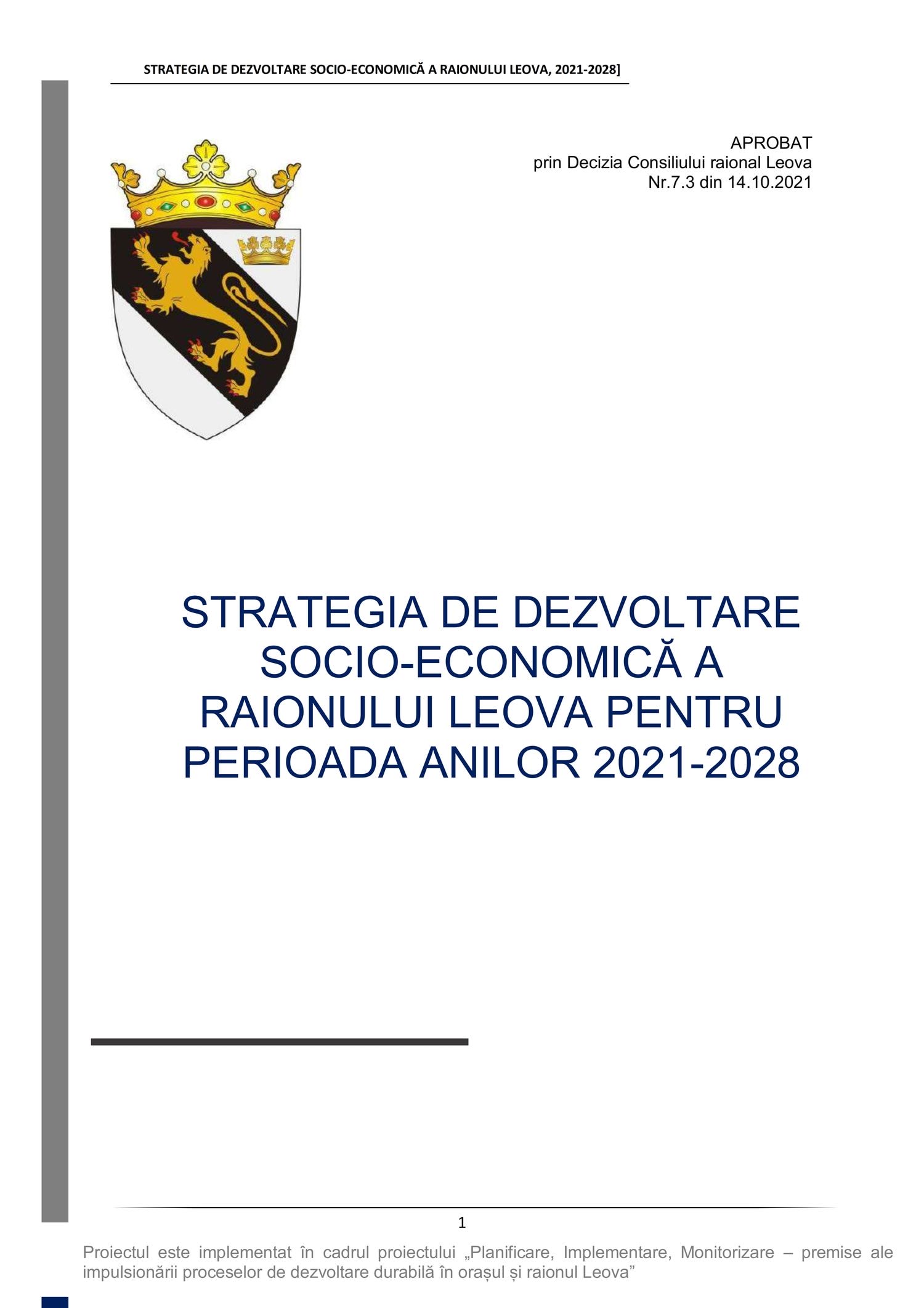Prima - Planificare regională - arhiva Strategii și programe raionale/municipale - Strategia de dezvoltare socio-economică a raionului Leova pentru perioada anilor 2021-2028