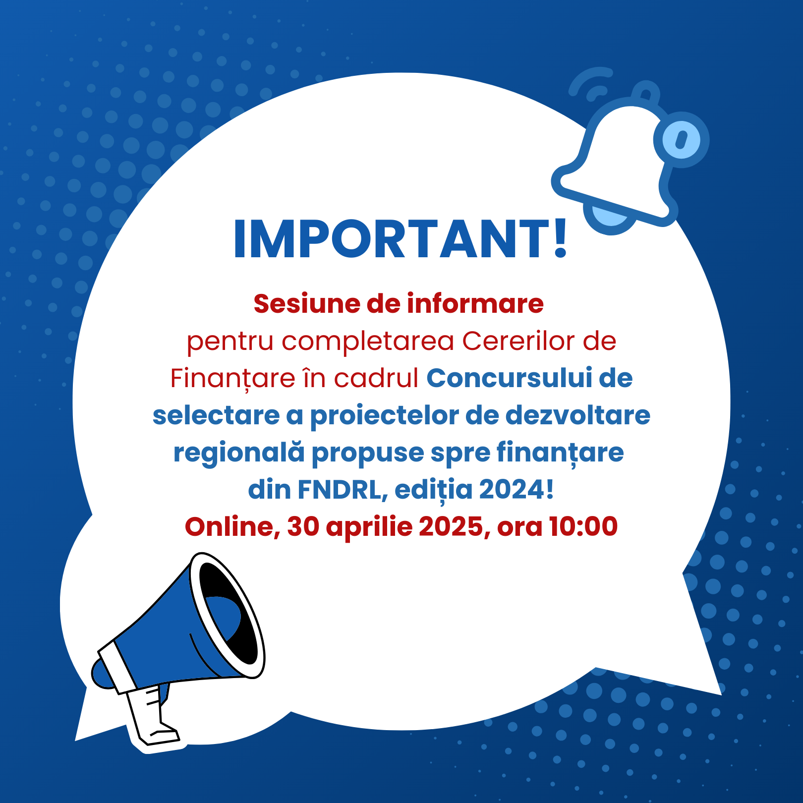 1272 Accesări Agenția de Dezvoltare Regională (ADR) Sud organizează o sesiune de informare dedicată autorităților publice locale (APL) din Regiunea de Dezvoltare Sud, care au participat la Concursul de selectare a proiectelor de dezvoltare regională lansat de Ministerul Infrastructurii și Dezvoltării Regionale în anul 2024 și ale căror note conceptuale au fost promovate în Etapa a II-a. Sesiunea se va desfășura miercuri, 30 aprilie 2025, în format online, pentru toate APL-urile care au trecut de Etapa I. Linkul de conectare va fi transmis cu o zi înainte, doar APL-urilor care confirmă participarea, la adresa de e-mail [email protected] sau la numărul de telefon 0241 26286. Reamintim că 22 de note conceptuale din Regiunea de Dezvoltare Sud au fost promovate în Etapa a II-a a concursului. Lista acestora poate fi consultată [aici]. În cadrul Etapei a II-a, reprezentanții APL beneficiare urmează să depună cererile complete de finanțare în termen de 90 de zile calendaristice de la data publicării oficiale a listelor notelor conceptuale. Termenul-limită de depunere este 16 mai 2025, ora 17:00. Dosarele vor fi transmise exclusiv în format electronic, prin intermediul platformei [www.mrdp.midr.gov.md], cu respectarea prevederilor punctului 4.2.2 „Depunerea cererii de finanțare" din Ghidul de aplicare la concurs. Încurajăm toate APL-urile admise în Etapa a II-a să pregătească dosarele cu rigurozitate, pentru a valorifica oportunitatea de a obține finanțare și a implementa inițiative relevante pentru dezvoltarea regională. |