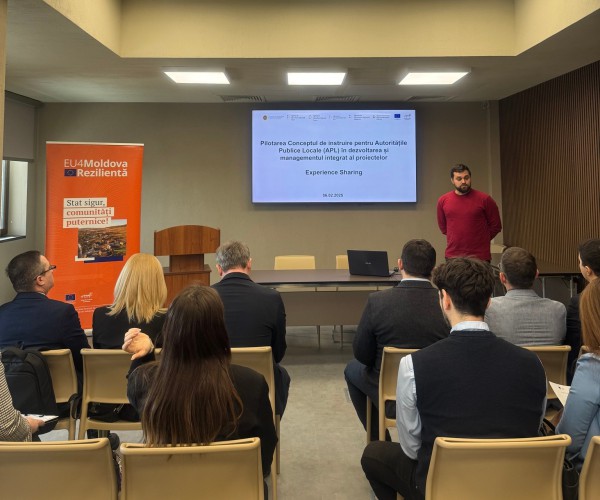 Echipa Agenției de Dezvoltare Regională Sud a participat luni, 16 februarie 2026, la ședința de totalizare a activităților de pilotare a noului concept de instruire pentru Autoritățile Publice Locale, prezentând experiența acumulată și lecțiile învățate, alături de echipa Solidarity Fund PL în Republica Moldova și celelalte agenții de dezvoltare regională. Pilotarea a reprezentat un pas important în consolidarea capacităților instituționale la nivel regional și local, având drept obiectiv pregătirea specialiștilor pentru atragerea și gestionarea eficientă a proiectelor, cu impact direct asupra comunităților. Conceptul a inclus un program intensiv de formare pentru specialiștii din cadrul Agențiilor de Dezvoltare Regională, care ulterior vor sprijini autoritățile locale în elaborarea și implementarea proiectelor. În iulie 2025, 20 de reprezentanți ai ADR-urilor au participat la sesiuni de Training pentru Formatori, susținute de experți din Polonia și Republica Moldova, urmate de o perioadă de mentoring online, axată pe dezvoltarea conținutului și metodologiei viitoarelor instruiri. La finalul anului, în regiunile de dezvoltare au fost organizate sesiuni pilot de instruire, în cadrul cărora peste 140 de specialiști din Autoritățile Publice Locale au fost instruiți în domeniul dezvoltării și gestionării proiectelor. Pentru asigurarea unor instruiri moderne și interactive, Agențiile de Dezvoltare Regională au fost dotate cu echipamente IT și multimedia în valoare de aproape 300.000 de lei, contribuind la crearea unor spații de instruire adaptate cerințelor actuale. Activitatea a fost realizată în cadrul proiectului „EU4Moldova Rezilientă: Stat sigur, comunități puternice”, finanțat de Uniunea Europeană și implementat de Solidarity Fund PL în Republica Moldova. |